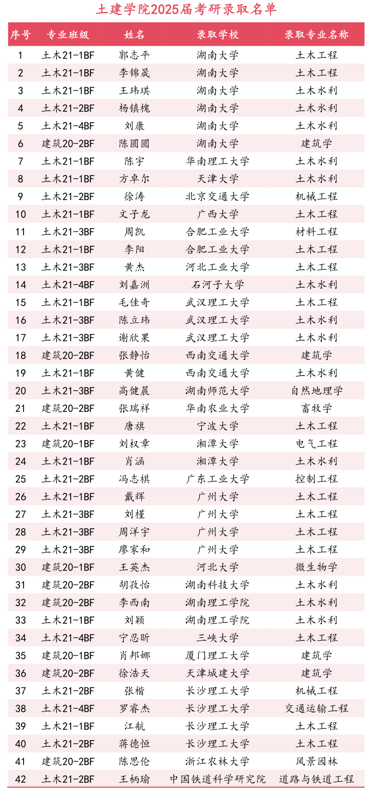 m88APP官网2025届学子考研再创佳绩!42名本科生被湖南大学、天津大学、华南理工大学、北京交通大学、西南交通大学、武汉理工大学、湘潭大学等高校录取。